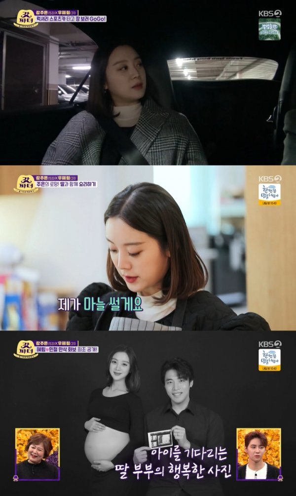 이어 우혜림은 강주은에게 아들의 초음파 사진을 공개하며 "특히 아기 입술이 남편을 닮았다"고 말했다. 뿐만 아니라 사랑스러운 D라인이 돋보이는 만삭 화보를 최초 공개하며 이목을 집중시켰다.