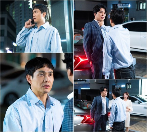 이런 가운데 오정세와 윤희석이 살벌하게 대립을 이루고 있는 ‘멱살잡이’ 현장이 시선을 강탈하고 있다. 극 중 왕준혁이 자신을 찾아온 왕준희(전혜진)의 전 남편 민경수(윤희석)에게 격노하는 장면. 누군가와 전화를 하던 왕준혁은 충격을 받은 듯 미간을 찌푸리며 얼어붙고, 이내 자신 앞에 나타난 민경수와 일촉즉발의 대치를 벌인다. 더욱이 왕준혁은 화가 풀리지 않는 듯 차가운 눈빛으로 민경수를 쏘아보다, 끝내 민경수의 멱살을 잡아채고 만다.