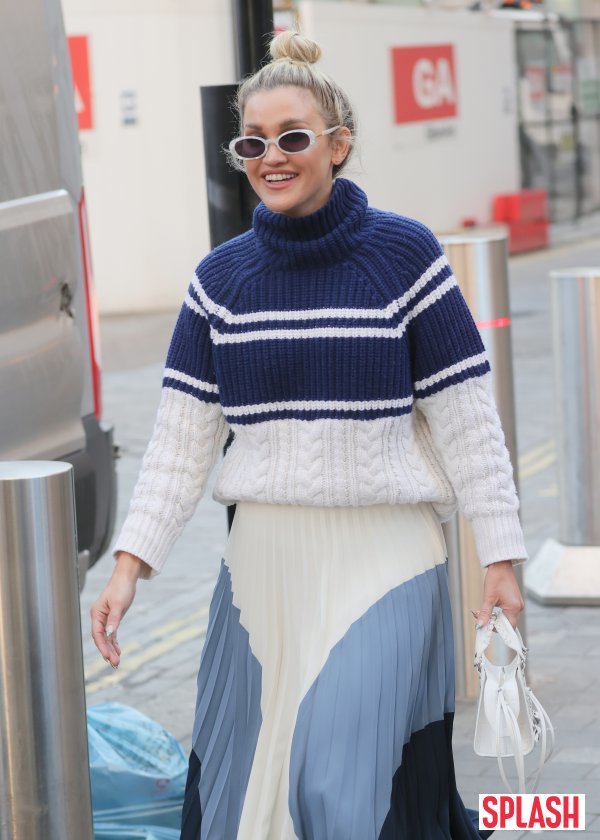 13일(현지시간) 영국 런던의 한 거리에서 포착된 로버츠는 니트, 스커트, 가방, 부츠를 블루 앤 화이트 톤으로 매치해 깨끗하면서 청량한 분위기를 자아냈다.