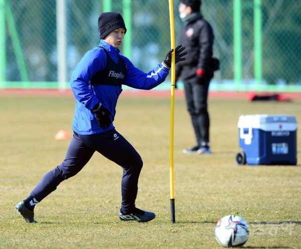 19일 제주 예래동체육공원에서 진행된 수원FC의 겨울 전지훈련에서 수원FC 이승우가 슈팅 연습을 하고 있다.