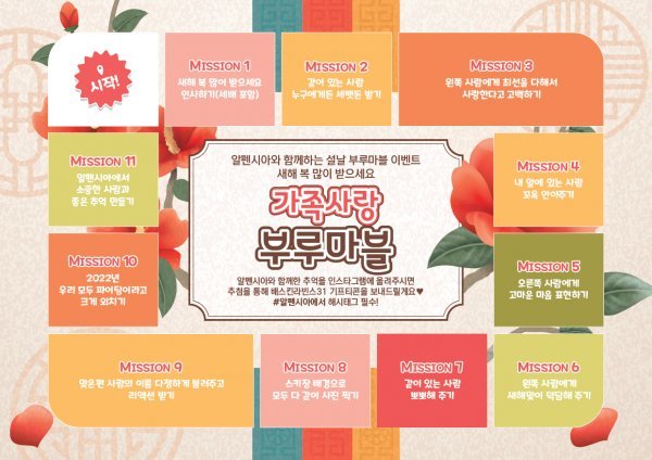 우선 29일부터 2월2일까지 알펜시아 호텔과 콘도 프론트에서 리조트 이용 고객에게 가족, 친구, 연인과 함께 즐길 수 있는 부루마블 맵과 나무 팽이 등을 선물한다. 알펜시아 리조트에서 즐긴 추억을 인스타그램에 해시태그와 함께 인증하면 추첨을 통해 베스킨라빈스 기프티콘을 증정한다.