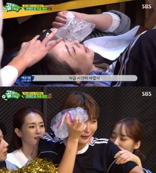 '골 때리는 그녀들' 박은영이 인기 예능 프로그램 골 때리는 그녀들에서 같은 팀 최은경과 부딪쳐 눈 주위에 멍이 들었다.