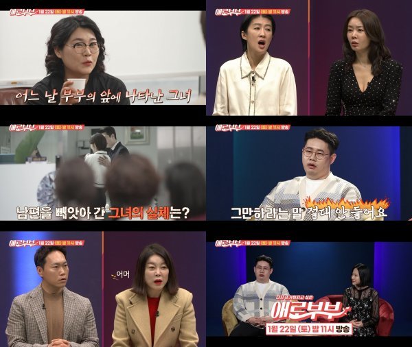 채널A·SKY채널 ‘다시 뜨거워지고 싶은 애로부부’(약칭 애로부부)가 남편을 빼앗아 간 여자 실체에 충격받은 아내 사연, 그리고 쌍방과실이라며 서로 세차게 비난하는 한 부부 토크 배틀을 선보인다.