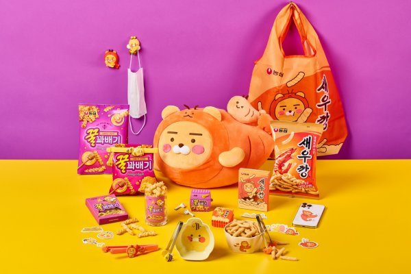 새우깡과 라이언, 꿀꽈배기와 춘식이를 조합했으며, 스낵그릇과 집게세트, 밀봉집게, 마스크걸이, 장바구니, 쿠션, 에어팟·버즈 케이스, 스티커팩 등으로 구성했다. 전국 카카오프렌즈 매장과 공식 온라인몰에서 구매할 수 있다.