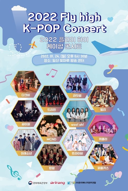 사단법인 한국매니지먼트연합(한매연)이 신인 그룹을 위한 콘서트를 연다. 24일 오후 6시30분 일산 빛마루 방송지원센터에서 ‘2022 플라이하이 K-POP 콘서트’가 열린다. 콘서트에는 다크비, 드리핀, 라잇썸, 빌리, 싸이퍼, MCND, 우아(woo!ah!), 위클리, 미래소년, 킹덤, 트라이비, 퍼플키스 등 12팀이 참여한다. 한매연은 “장기간 코로나19 대유행으로 대중음악공연산업이 침체됨에 따라 데뷔를 하고도 공연의 기회를 얻지 못한 신인 아이들을 위해 마련한 자리”라고 설명했다.