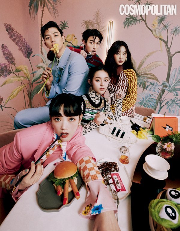 넷플릭스 시리즈 \'지금 우리 학교는\'(이하 \'지우학\')의 코스모폴리탄 2월호 화보가 공개됐다. 주연 배우 박지후와 윤찬영, 조이현, 로몬, 이유미가 ’기묘한 만찬’을 주제로 카메라 앞에 섰다.