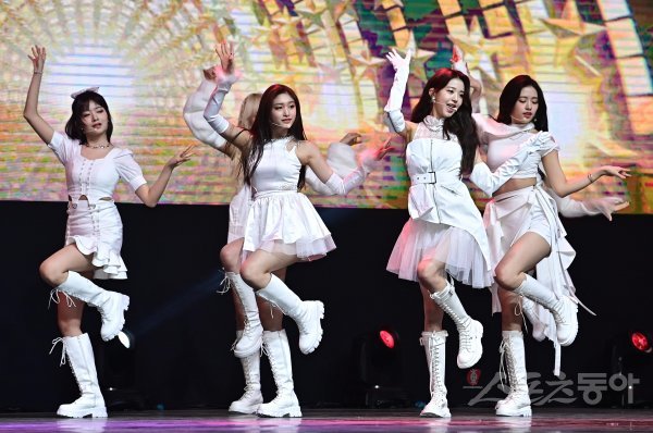 25일 서울 송파구 올림픽공원 올림픽홀에서 열린 ‘2022 제24회 베이징동계올림픽대회 대한민국 선수단 결단식’에서 그룹 아이브가 축하공연을 펼치고 있다.