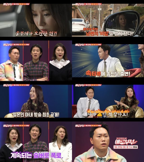 남편이 숨긴 비밀이 재산뿐만이 아니란 사실에 경악한 아내의 사연을 다룬 ‘애로드라마’, 한일부부 송진우&미나미 부부의 예상치 못한 설전이 펼쳐지는 ‘속터뷰’는 29일 밤 11시 방송되는 ‘애로부부’에서 공개된다.