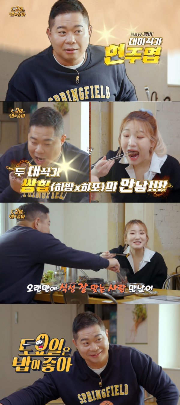 먹방에 최적화된 현주엽은 등장부터 강렬했다. 이미 \'토밥좋아\'에서 먹방 최강자로 검증된 히밥과 식탁 앞에서 마주한 것. 무림의 고수들끼리는 서로를 알아보듯 "제발 한 번만 같이 밥 먹고 싶었다", "둘이 같이 먹기가 쉽지 않을텐데" 등 남다른 독백도 웃음을 자아냈다.
