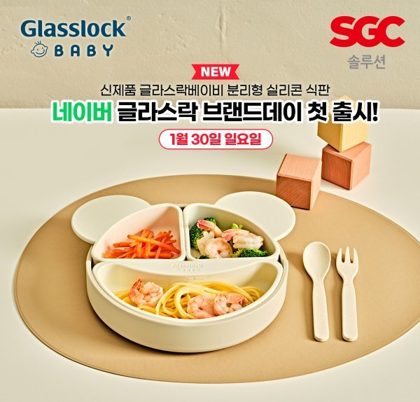 SGC솔루션이 30일 네이버 글라스락 브랜드데이 행사를 통해 ‘글라스락 베이비 분리형 실리콘 식판’을 선보인다.