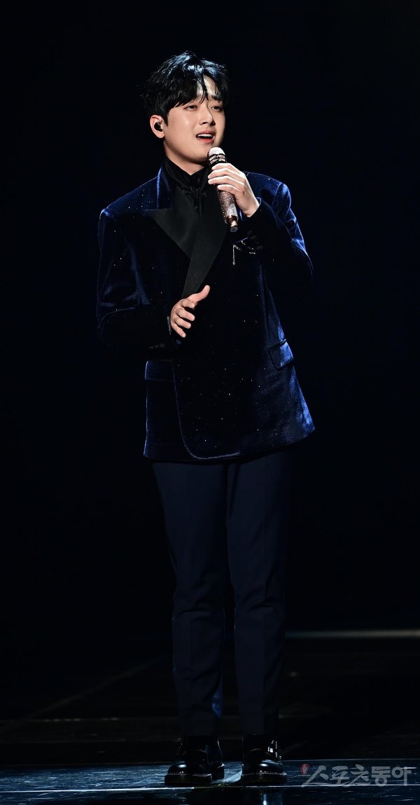 가수 이찬원이 27일 서울 송파구 잠실실내체육관에서 열린 ‘제11회 가온차트 뮤직 어워즈’ 공연을 펼치고 있다.