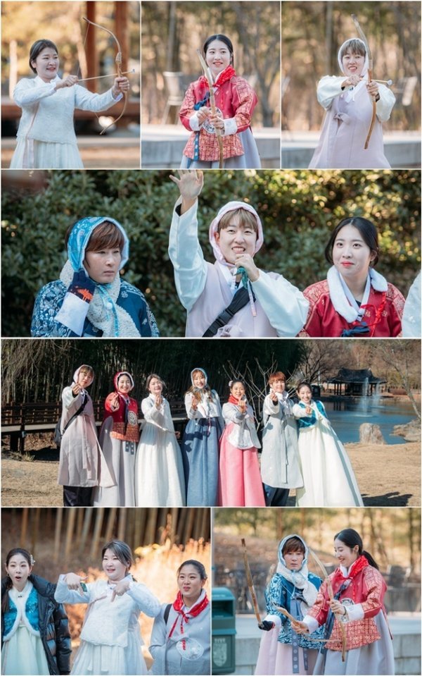 무엇보다 언니들과 ‘양궁즈 어셈블’ 강채영-장민희-안산은 매 미션마다 간식이 걸린 치열한 ‘간식 레이스’로 현장을 달궜다. 먼저 언니들과 양궁즈 어셈블이 설날 맞이 한복으로 갈아입고 가지각색 포즈를 선보여 웃음을 자아낸 상황. 언니들과 양궁즈 어셈블은 귀도리로 포인트를 준 귀도리즈, 중전마마와 대비마마 느낌의 사극즈, 웨딩드레스와 하객룩 같은 신부즈 등 개성 만점 한복 자태를 뽐내며 ‘8인 8색 한복 런웨이’를 선사했다.