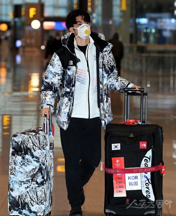 ‘2022 베이징 동계올림픽’에 출전하는 남자 피겨 차준환이 3일 인천국제공항을 통해 베이징으로 출국하고 있다.