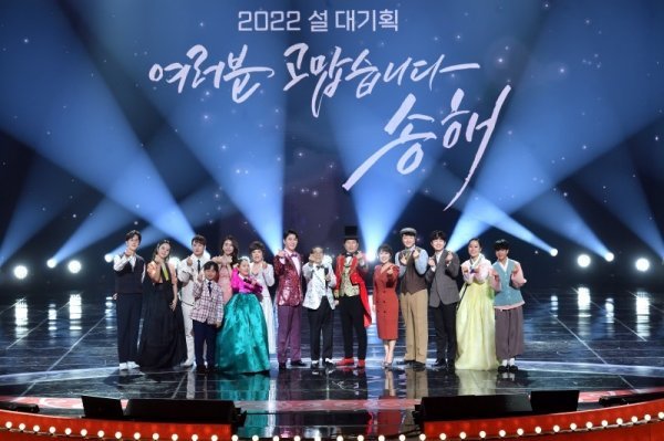 KBS 2TV ‘2022 설 대기획 여러분 고맙습니다, 송해’가 설특집 예능프로그램 중 가장 높은 시청률을 거뒀다. 3일 시청률 조사회사 닐슨코리아에 따르면 지난달 31일 방송한 ‘여러분 고맙습니다, 송해’는 12.7%의 시청률을 기록했다. 방송인 송해의 인생을 정동원, 이찬원, 영탁 등 후배들이 뮤지컬 형식으로 꾸며 호응을 얻었다. 1일과 2일 방송한 SBS ‘판타스틱 패밀리-DNA 싱어’는 7.8%, 6.6%로 뒤를 이었다. 1일 방송한 KBS 2TV ‘조선팝 어게인 송가인’이 6.7%, KBS 2TV ‘자본주의학교’가 6.2% 를 기록했다. MBC ‘컬링 퀸즈’는 2.9%에 머물렀다.