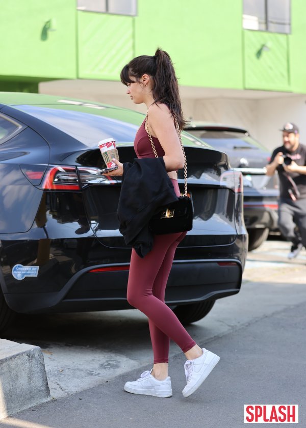 1일(현지시간) 미국 로스앤젤레스의 한 거리에서 포착된 삼파이오는 자주색의 편한 트레이닝복을 입고 완벽한 모델 몸매를 자랑했다.