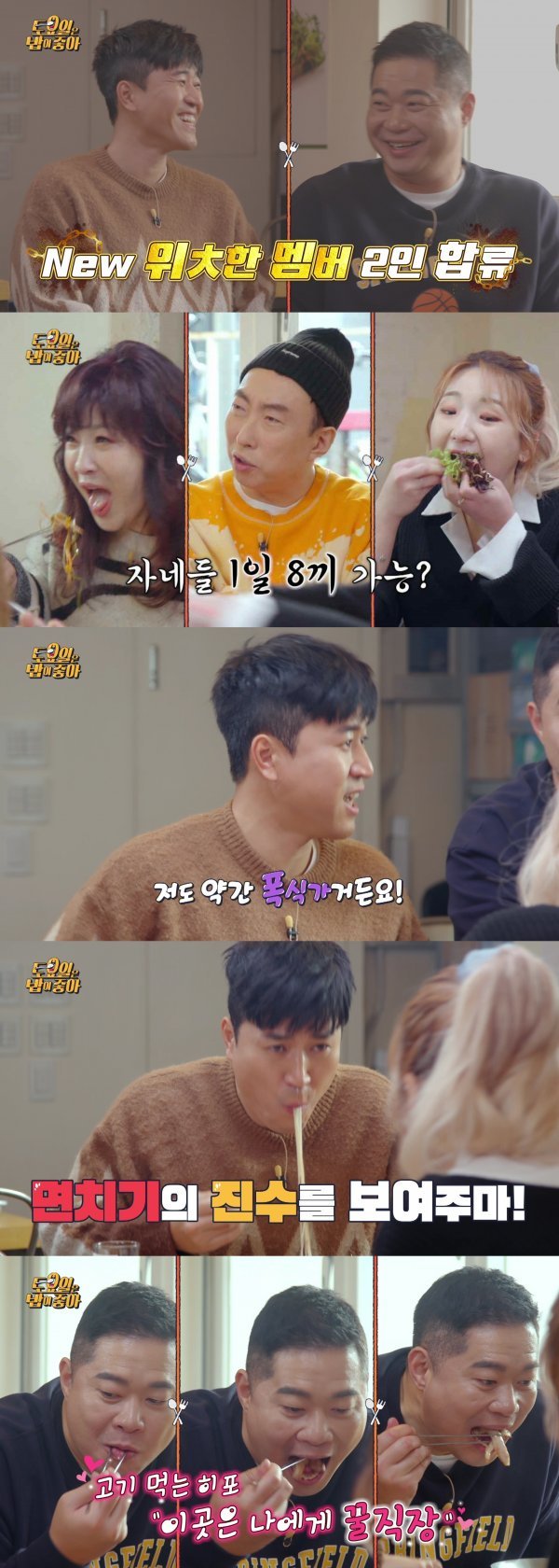 기존 멤버 박명수는 현주엽, 김종민을 반기며 "단점을 보완하는 멤버들"이라며 "그동안 히밥만 많이 먹지 않았나"라고 소개했다. 그러면서 새 멤버들에게는 "팁을 드리자면 \'토밥좋아\'에서는 하루에 여덟 끼를 먹는다"고 만만치 않은 먹방 여정을 설명했다.