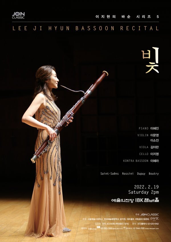 이지현의 ‘바순시리즈5 빛’은 조인클래식이 주최하고 서울예술고등학교, 한국예술종합학교 음악원, 데트몰트 국립음대 동문회, D.W.K가 후원한다.