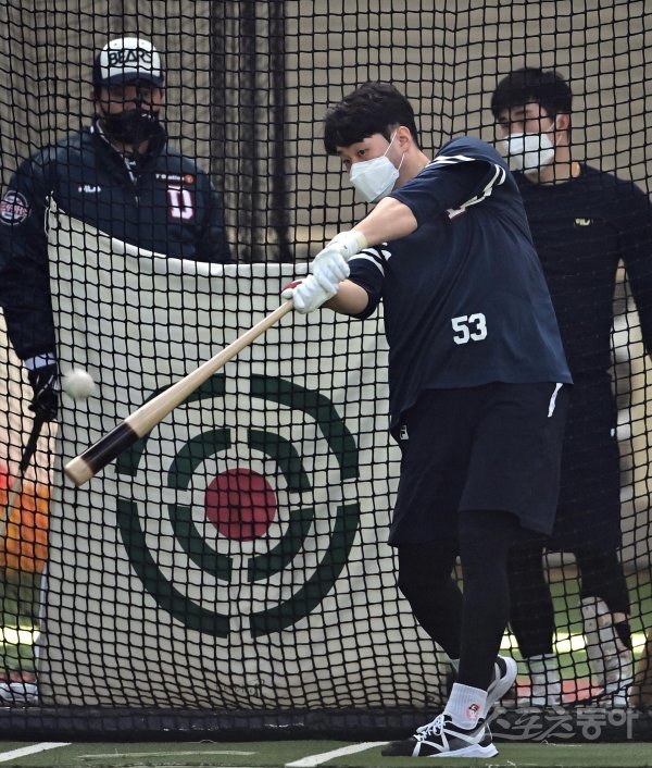 6일 경기도 이천 두산베어스파크에서 열린 두산 베어스의 2022 스프링캠프에서 두산 양석환이 타격 훈련을 하고 있다.