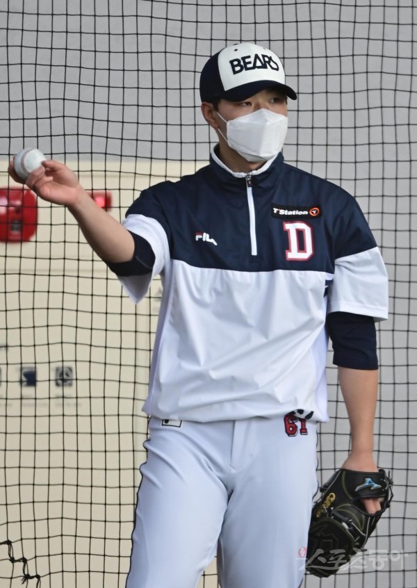 6일 경기도 이천 두산베어스파크에서 열린 두산 베어스의 2022 스프링캠프에서 두산 최원준이 캐치볼을 하고 있다.