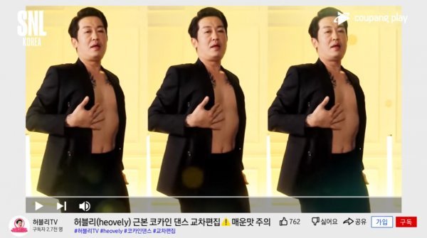 화제의 ‘허카인’은 허성태가 지난달 29일 쿠팡플레이 ‘SNL코리아 시즌2’에서 선보인 댄스 영상. 당시 ‘허블리TV’ 코너에서 새내기 유튜버 ‘허블리’를 연기한 허성태는 감성 브이로그, 룩북 등 각종 화제의 유튜브 영상을 패러디했다. ‘허카인’은 댄스 커버 영상으로 허성태는 맨몸에 재킷을 걸치거나 셔츠를 풀어헤친 채 몽환적인 웨이브를 선보였다. 반전 섹시미와 중독적인 퍼포먼스로 온라인상에서 ‘1일1허카인’ 돌풍을 일으키고 있다.