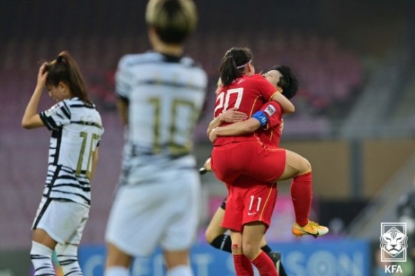 동점을 내준 뒤 잘 버티던 한국은 후반 추가시간 결승골을 내줬다. 수비가 샤오위를 놓쳤고, 왼쪽 골대 구석을 향한 슈팅이 그대로 결승골이 됐다.