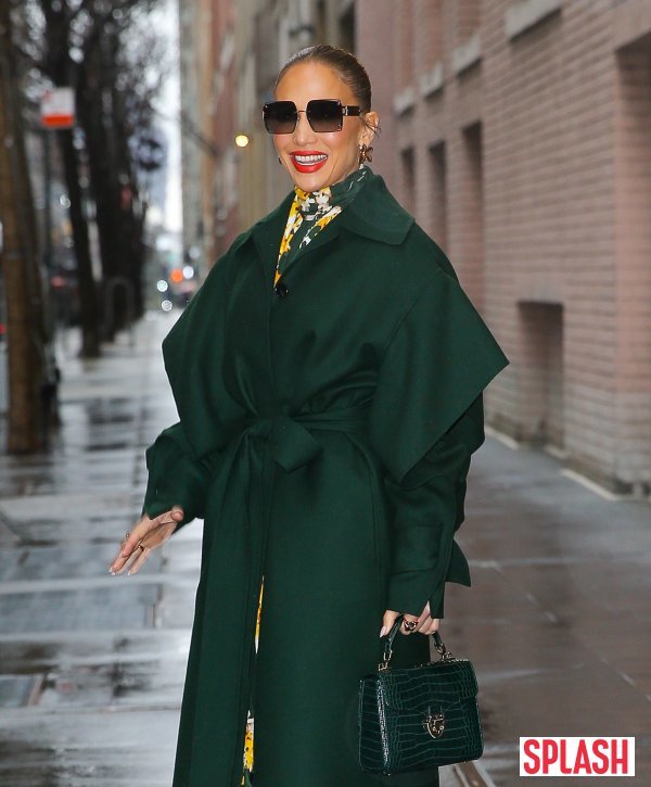 4일(현지시간) 미국 뉴욕의 한 거리에서 포착된 로페즈는 그린 컬러로 맞춘 코트와 가방에 노란색이 포인트인 원피스를 매치하여 고급스럽고 센스있는 패션을 자랑했다.