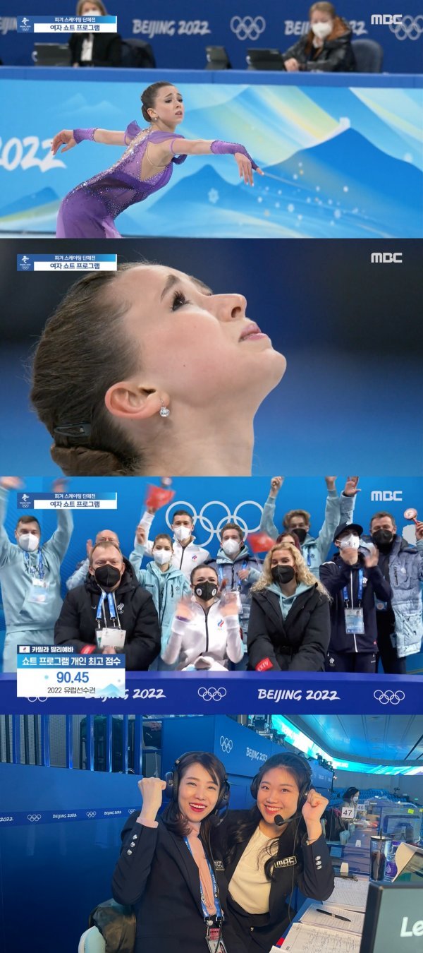 이날 경기에서 발리예바는 첫 점프였던 트리플 악셀을 클린하게 선보였고, 이어 트리플 플립, 트리플 러츠-트리플 토루프 콤비네이션 점프까지 실수 없이 해냈다. 이후 스탭 시퀀스와 스핀까지 모두 레벨 4로 처리, 무결점 연기를 완성한 발리예바. 이에 경기가 끝난 직후 경기 중계를 맡은 MBC 김해진 해설위원과 김초롱 캐스터 역시 극찬을 쏟아내 눈길을 끌었다.