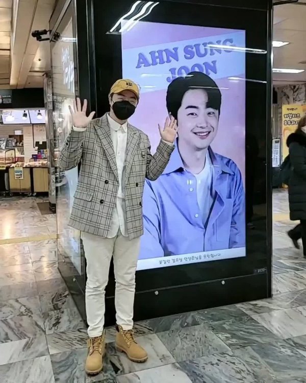 사진 속 안성준은 자신의 얼굴이 담긴 지하철 광고판 앞에서 환한 미소를 짓고 있다. 이번 광고는 안성준의 팬클럽 주니버스가 안성준을 위해 선물한 것으로 광고에 ‘꽃길만 걸으실 안성준님을 응원합니다’라는 멘트를 담아 훈훈함을 더했다.