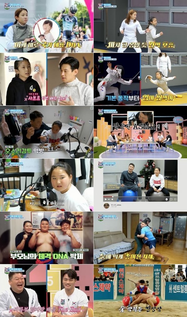 먼저 ‘대한민국 최초 펜싱 금메달리스트’ 남현희의 딸 하이(10)가 엄마와 함께 한 펜싱 2년 차 훈련 모습을 공개했다. 남현희는 자신의 뒤를 이어 플뢰레를 배우고 있는 딸에 대해 “아빠, 엄마가 운동선수여서 스포츠 활동에 적응을 잘 하는 편”이라며 남편인 사이클 국가대표 선수 공효석의 DNA를 언급했다. 이어 “빠른 발이 장점이다. 나도 선수 때 공격적인 성향이었는데 그것도 닮았다. 승부욕도 남다르다”라며 웃었다.