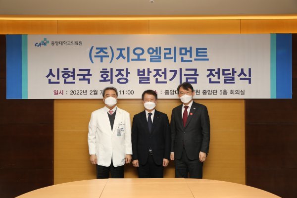 중앙대의료원은 동문인 지오엘리먼트 신현국 회장으로부터 3월 개원을 앞둔 중앙대광명병원 건립을 위해 써달라며 1억 원을 기탁받았다.중앙대학교의료원은 7일 중앙대병원 중앙관에서 박상규 중앙대 총장, 홍창권 중앙대의료원장, 신현국 지오엘리먼트 회장 등이 참석한 가운데 발전기금 전달식을 가졌다.