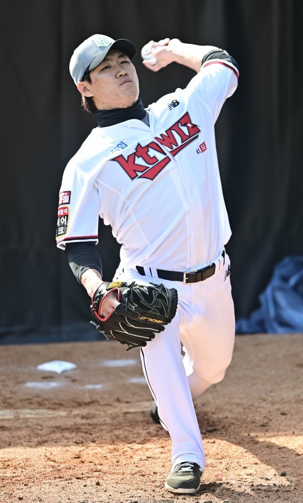 8일 부산 기장현대차드림볼파크에서 열린 KT 위즈의 2022 스프링캠프에서 KT 정성곤이 불펜 피칭을 하고 있다.