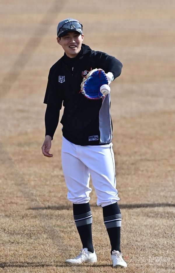 8일 부산 기장현대차드림볼파크에서 열린 KT 위즈의 2022 스프링캠프에서 KT 배정대가 캐치볼을 하고 있다.