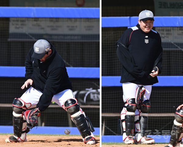 8일 부산 기장현대차드림볼파크에서 열린 KT 위즈의 2022 스프링캠프에서 KT 김준태가 포구 훈련을 하고 있다.