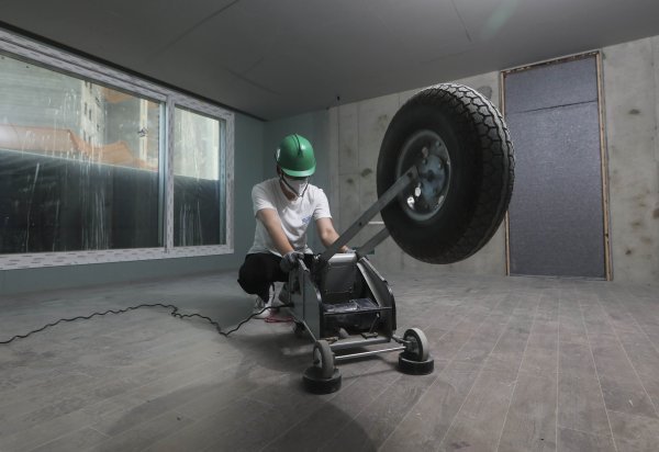 DL이앤씨의 신축 아파트 현장 중량 충격음 실험 장면. 사진제공 | DL이앤씨