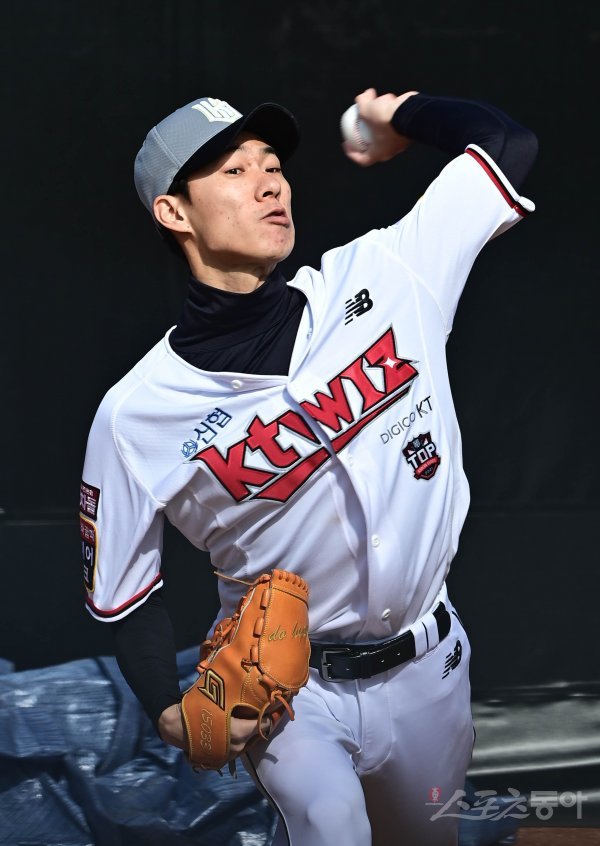 9일 부산 기장현대차드림볼파크에서 열린 KT 위즈의 2022 스프링캠프에서 KT 이창재가 불펜 피칭을 하고 있다.