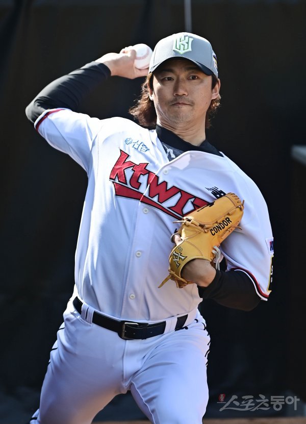 9일 부산 기장현대차드림볼파크에서 열린 KT 위즈의 2022 스프링캠프에서 KT 안영명이 불펜 피칭을 하고 있다.