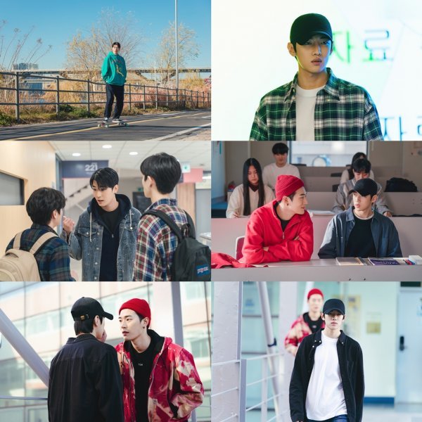 9일 제작진을 통해 공개된 ‘시맨틱 에러’ 스틸 컷에는 장재영, 추상우 매력과 이들 관계성이 담겨 있다. 스케이트보드를 타고 달리는 스틸 컷 속 장재영은 스피드를 즐기는 듯하다. 자유로운 성격이 묻어난다. 또한, 만화를 찢고 나온 듯한 훈훈한 외모가 시선을 끈다.