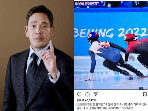 7일 열린 베이징 동계올림픽 쇼트트랙 남자 1000m 준결선에서 황대헌과 이준서는 각각 조 1위와 2위로 결승선을 통과했지만, 페널티 판정을 받아 결선 진출에 실패한 바 있다. 이에 정 부회장은 9일 자신의 인스타그램에 쇼트트랙 남자 1000m 준결선에서 리원룽(중국)이 황대헌의 무릎을 손으로 치고 있는 사진을 공유하며 “무엇이 문제인가. 앞에 간 거 아니면 종아리로 뒷 선수 팔을 민 거”라고 풍자했다.