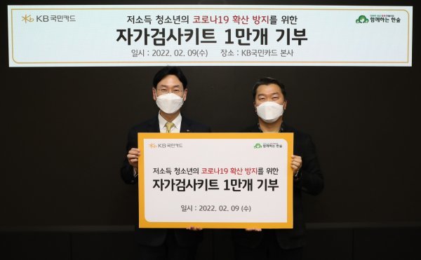 KB국민카드가 9일 서울 종로구 소재 본사에서 저소득 청소년에게 자가검사키트를 기부했다.
