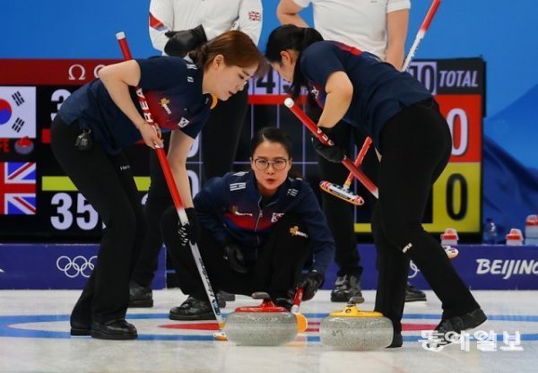 김은정(스킵)-김선영(리드)-김초희(세컨드)-김경애(서드)-김영미(후보)로 구성된 강릉시청 소속 팀 킴은 11일 베이징국립아쿠아틱센터에서 벌어진 대회 여자컬링 라운드로빈 2차전에서 영국을 9-6으로 제압했다. 이로써 한국은 2경기만에 값진 대회 첫 승을 신고했다.