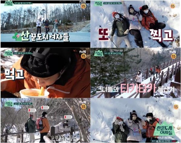 이날 방송되는 '산꾼도시여자들'에서는 지난해 선풍적인 인기를 끌었던 티빙 오리지널 '술꾼도시여자들'(약칭 술도녀) 주역 이선빈, 한선화, 정은지의 우정산행기 첫 번째 이야기가 펼쳐진다. 드라마에서 만큼이나 캐릭터 확실한 세 사람 현실 케미스트리(호흡·궁합)에 기대감이 높아진다.