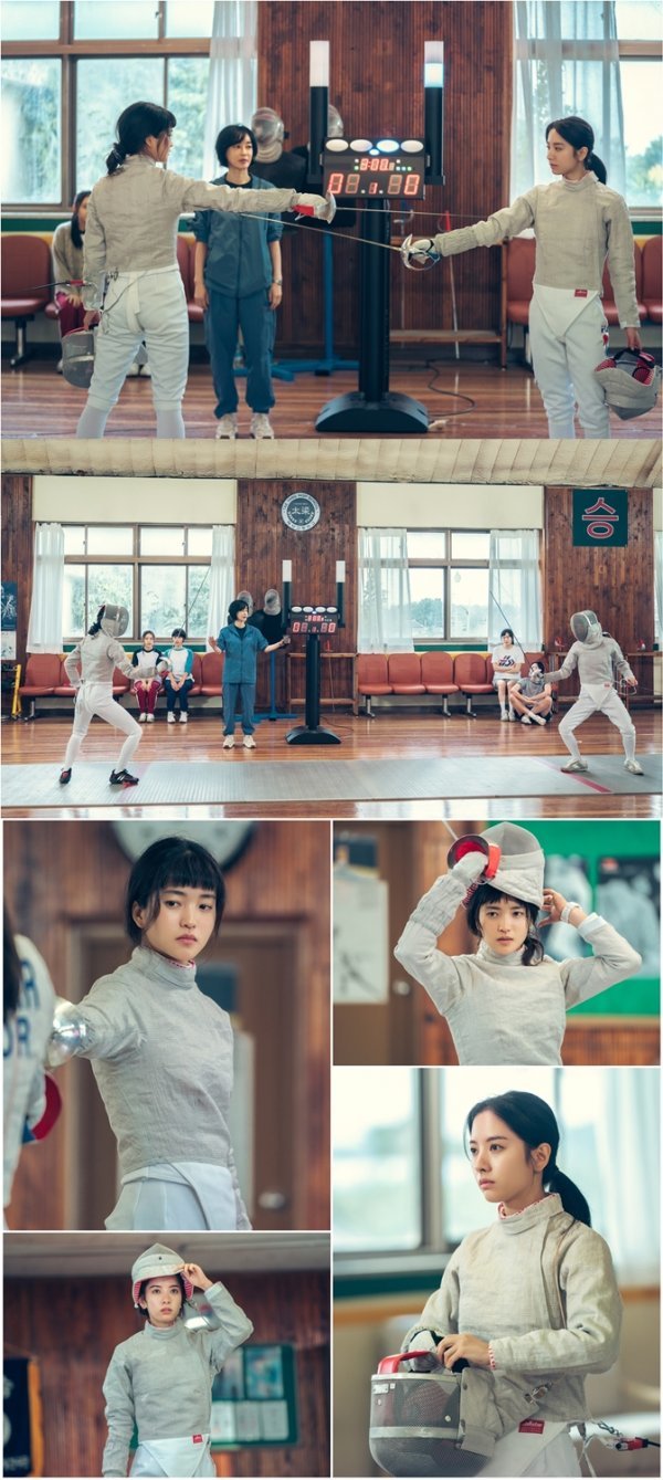이와 관련 13일(오늘) 방송될 2회에서는 김태리와 김지연(보나)이 ‘펜싱 피스트’에서 긴장감이 감도는 ‘펜싱 연습 경기’을 선보여 시선을 강탈하고 있다. 극중 나희도(김태리)와 고유림(김지연)이 펜싱 장비를 장착하고 연습 경기에 돌입하는 장면. 나희도와 고유림은 각자 몸을 풀면서도 서로 눈 한번을 마주치지 않은 채 경기를 앞둔 경계심을 드러낸다. 이내 마스크를 내려쓰고 피스트에 올라선 두 사람이 치열한 탐색전을 벌이더니 서로에게 칼끝을 겨누는 것. 뜨거운 패기로 맞붙은 나희도와 고유림의 ‘펜싱 연습 경기’는 과연 어떤 결과를 가져올지 궁금증이 모아지고 있다.