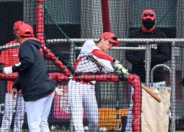 KIA 타이거즈가 13일 전남 함평 기아챌린저스필드에서 2022 스프링캠프를 가졌다. 오정환이 타격 훈련을 하고 있다.