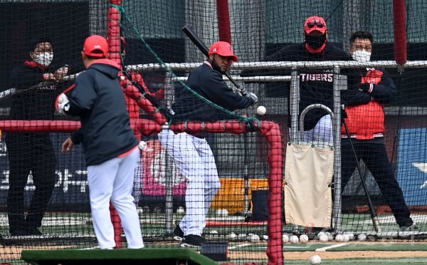 KIA 타이거즈가 13일 전남 함평 기아챌린저스필드에서 2022 스프링캠프를 가졌다. 소크라테스가 타격 훈련을 하고 있다.