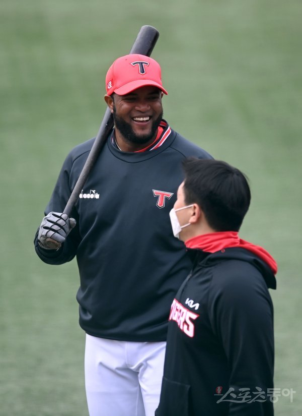 KIA 타이거즈가 13일 전남 함평 기아챌린저스필드에서 2022 스프링캠프를 가졌다. 소크라테스가 훈련 중 웃고 있다.