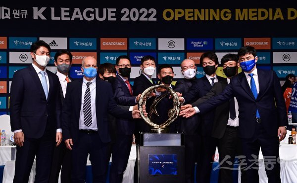 ‘하나원큐 K리그1 2022 개막 미디어데이’가 14일 서울 효창동 백범김구기념관에서 열렸다. 신종 코로나바이러스 감염증(코로나19) 대유행 이후 처음으로 열린 현장 미디어데이였다. 장염 증세로 불참한 김남일 성남FC 감독(45)을 제외한 11개 구단 감독들이 19일 새 시즌 개막에 앞서 출사표를 던졌다.