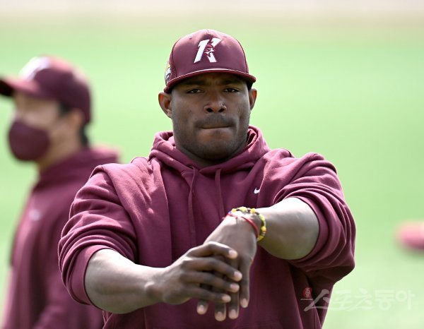 키움 히어로즈가 14일 전남 고흥 거금야구장에서 2022 스프링캠프를 가졌다. 푸이그가 워밍업을 하고 있다.