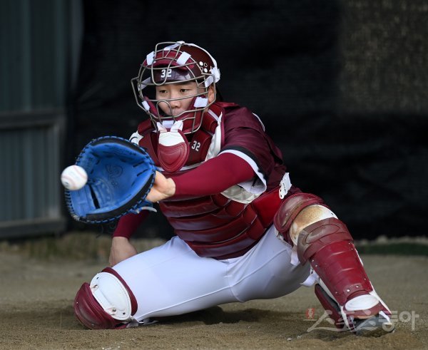 키움 히어로즈가 14일 전남 고흥 거금야구장에서 2022 스프링캠프를 가졌다. 포수 김재현이 볼을 받고 있다.
