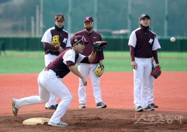 키움 히어로즈가 14일 전남 고흥 거금야구장에서 2022 스프링캠프를 가졌다. 김휘집이 수비 훈련을 하고 있다.