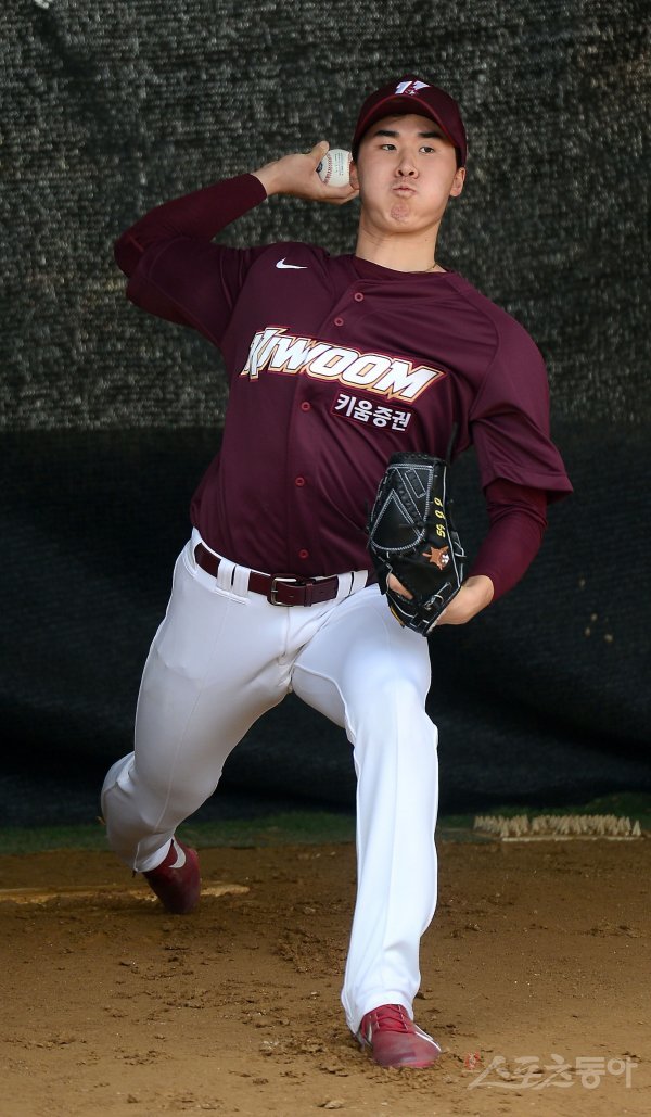 키움 히어로즈가 14일 전남 고흥 거금야구장에서 2022 스프링캠프를 가졌다. 장재영이 불펜 투구를 하고 있다.